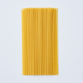 使用優質杜蘭小麥粉與水製成,成分單純,無添加防腐劑、色素及香料,麵體呈現金黃色澤,散發原始小麥香氣。