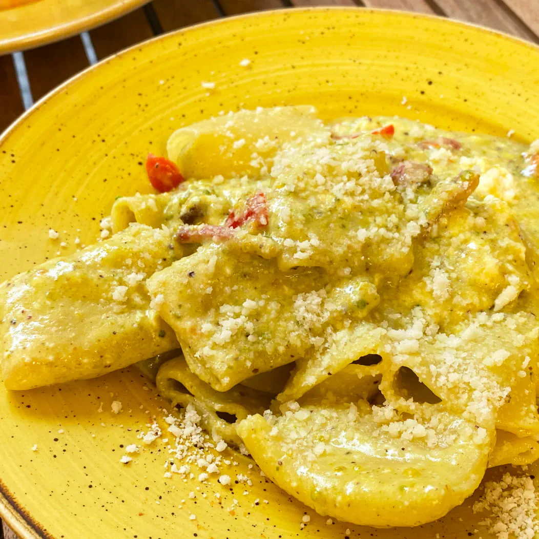 特色是造型捲曲的螺旋狀外形,用湯匙容易舀起食用的義大利麵。
