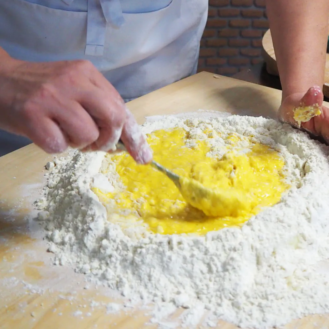 義大利麵的製作方式會依小麥的特色而改變,內含著人們的智慧與用心。向義大利家庭學習製作義大利麵後,我們重新進行了商品開發。