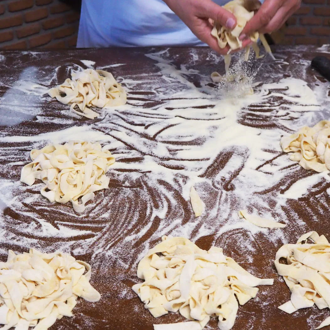 麵團透過模具擠壓、成型,在口感和柔軟度之間達成平衡,再依不同型態麵體適合的溫度和時間乾燥,完成耐煮、高品質的義大利麵。