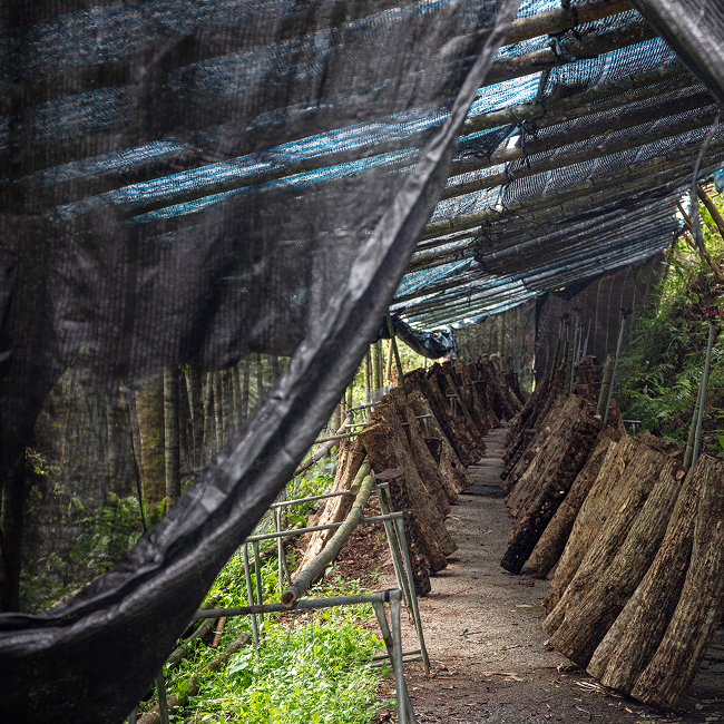 林下經營段木香菇利用森林疏伐段木,透過植菌及6至8個月間在林下靜置及培育,待完成走菌後,進行直立、敲擊、澆水等工序,促使段木出菇。每次段木香菇生產都經過漫長的等待與繁瑣的工序,在森林合宜環境條件栽培,生產菌菇口感厚實、香氣足夠,是林下經濟最具代表性產品。
