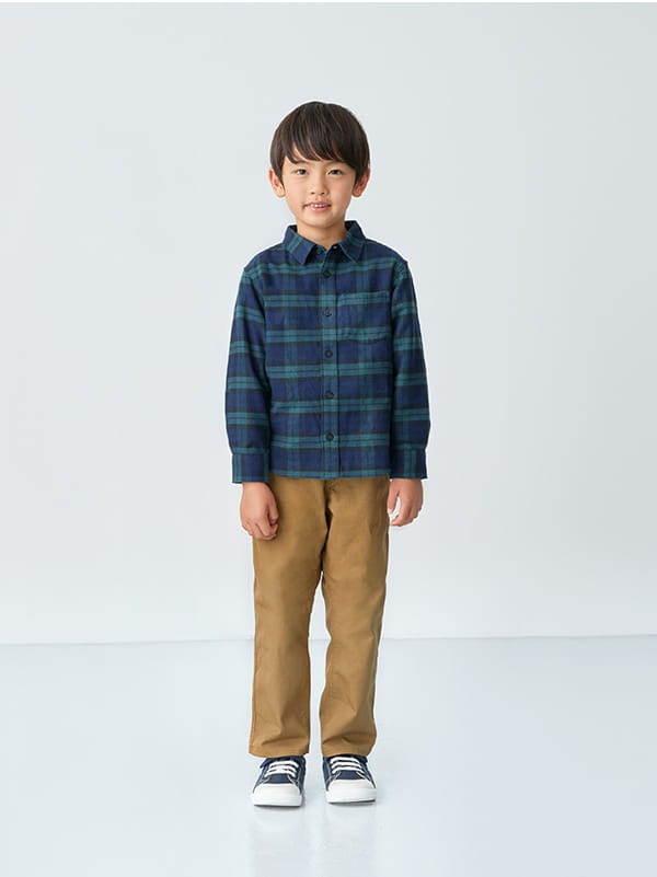 模特兒:8歲/121cm|7歲/122.5cm,皆著用120尺寸外套、上衣與下著