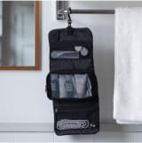 智慧型手機或筆電的電線、耳機的充電盒等配件不停增加。如果是「聚酯纖維吊掛可拆收納袋」,收納包的內容物就能一目瞭然。除了能在飛機或電車上吊掛,中間的小包還能拆下,是日常生活跟旅遊時都不可或缺的用品。