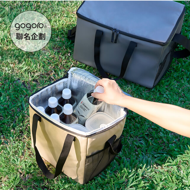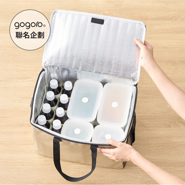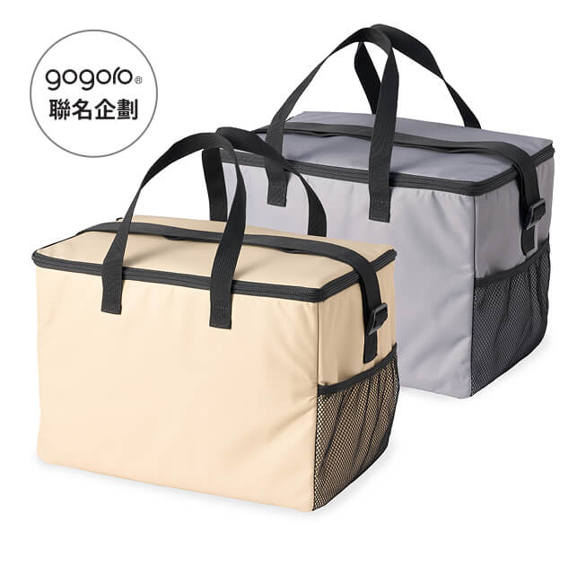 • 表面施以撥水加工,可手提也可肩背的保冷購物袋。內側使用鋁箔材質,內側網袋可放置保冷劑。