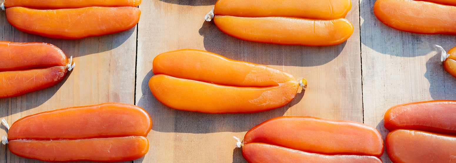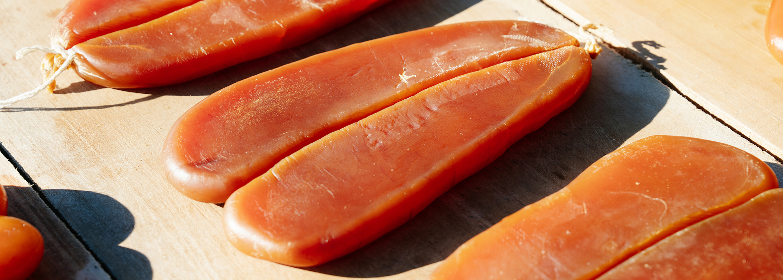 來自友善漁船的野生烏魚子,遵循自然漁汛與季節節律採捕,每一片都厚實飽滿、風味純粹;