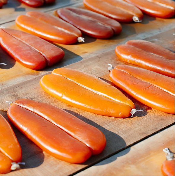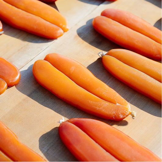 烏魚子全程來自海洋之心認證之友善船隊及加工廠,從漁撈、選卵至初步處理,皆依循在地經驗與季節節律,保留烏魚子濃郁海味與細緻口感,展現臺灣冬季海洋的代表風味。