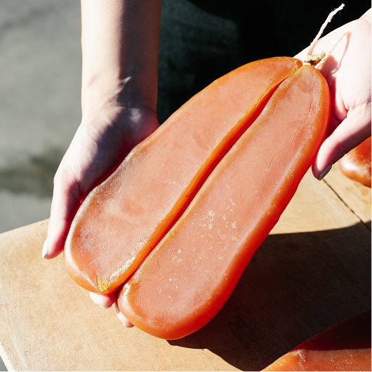 烏魚子口感厚實、風味純粹、層次分明,帶來冬季海洋的代表味道,讓年節餐桌多一份珍味,也把海洋的祝福送到重要的人手中。