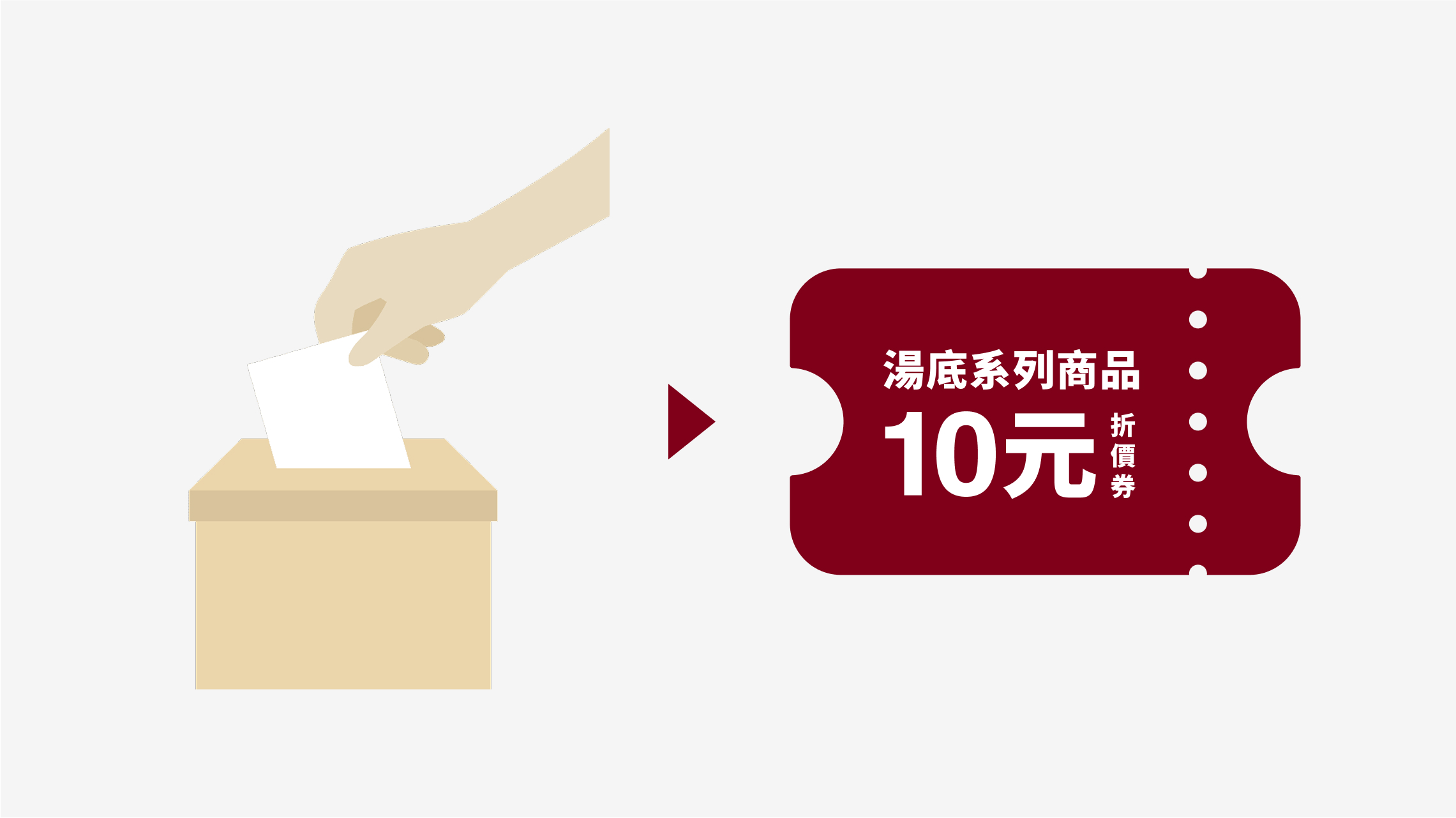 完成投票後,即可獲得 湯底系列商品10元折價券 乙張。