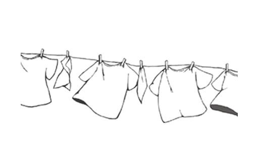因為是較為硬挺的布料,請整理衣物外形並拉平皺褶後晾乾。