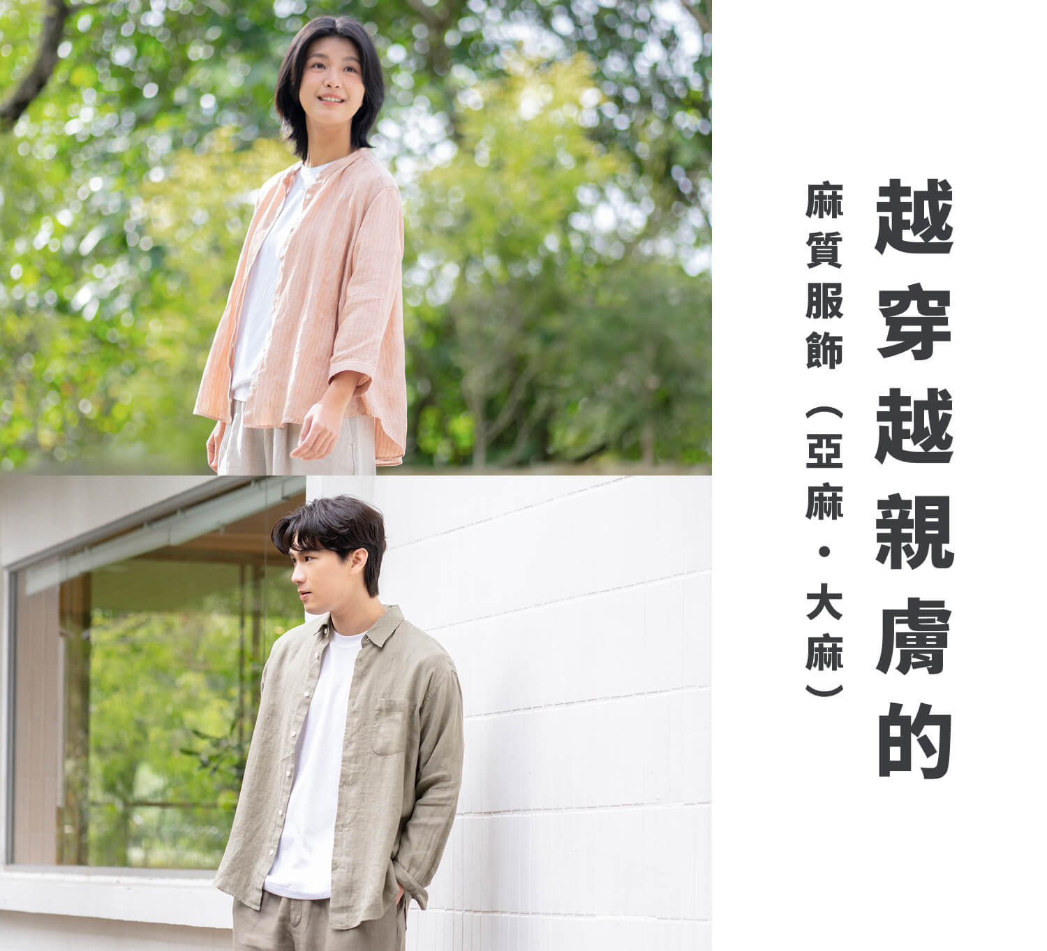 介紹具有良好透氣性與速乾性的麻質服飾(亞麻・大麻)。
