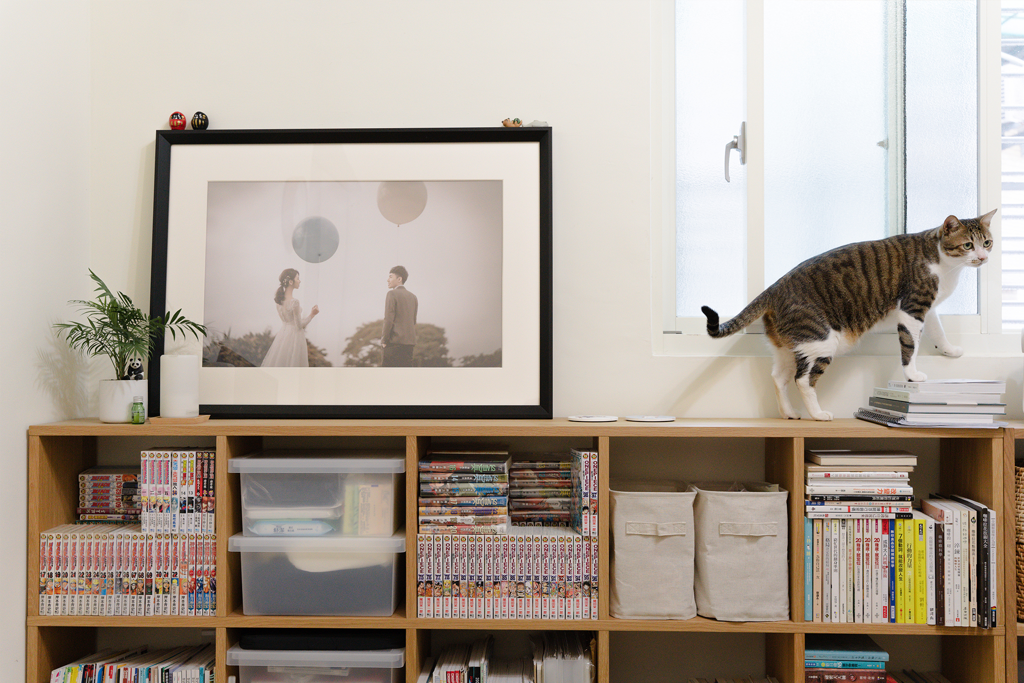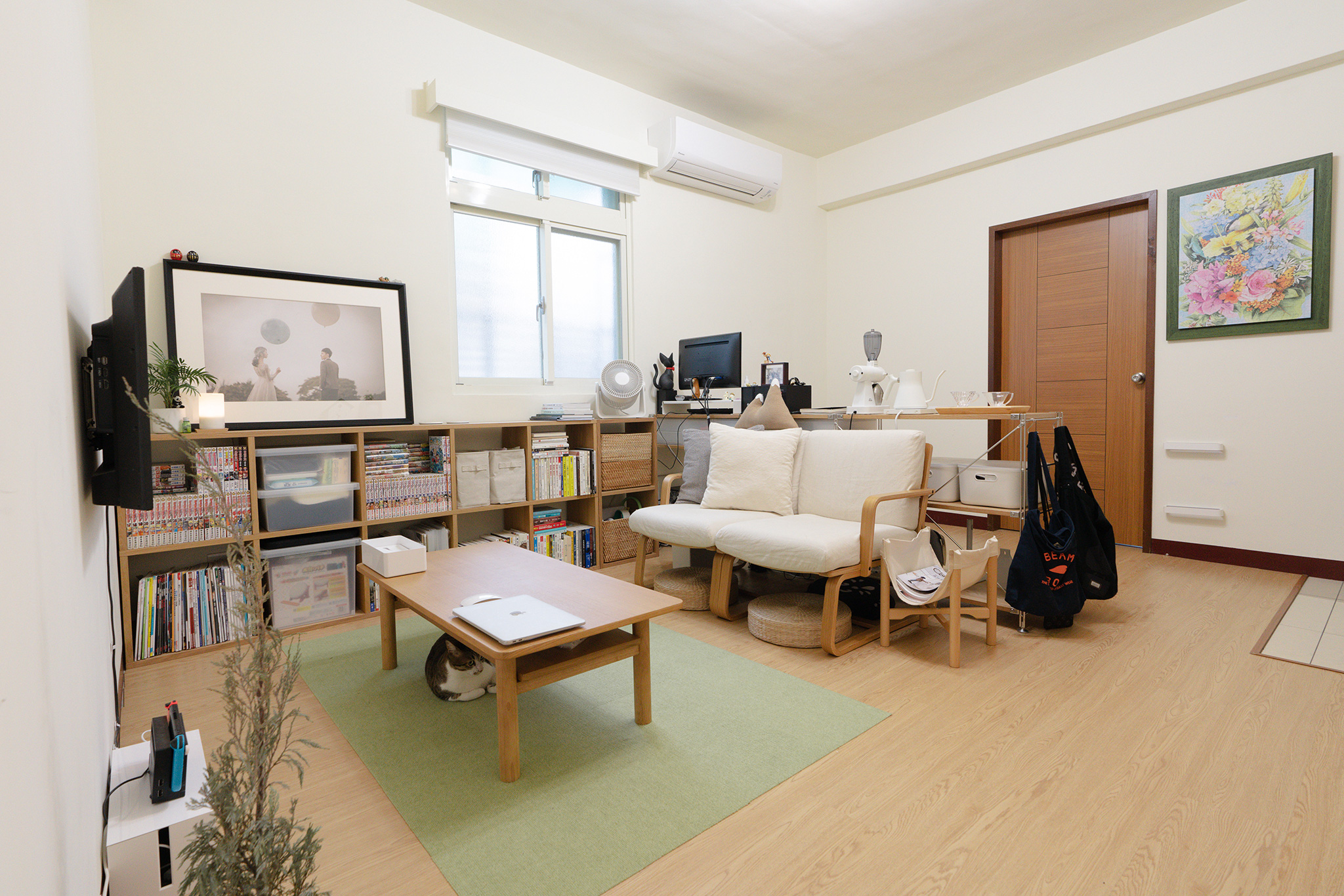 一般人很少會有選用一套家具來長久對應人生不同階段的想法,但由於顧客了解無印良品家具的可變動與泛用性的特質,在空間配置上的想法與我較容易產生共鳴。利用無印家具的單純色調、基本吋法來配合屋主的生活習慣與動線,讓空間常保開闊、整潔及統一感,同時也不因租屋而屈就某些限制,打造夫妻倆與貓咪最舒服、最適切的空間模樣。兩人對於未來的規劃非常明確也持續邁進目標當中,同時將屋子裡的家具當作生活夥伴,希望日後無論身處任何其他住所,都能持續陪伴自己一同前進。
