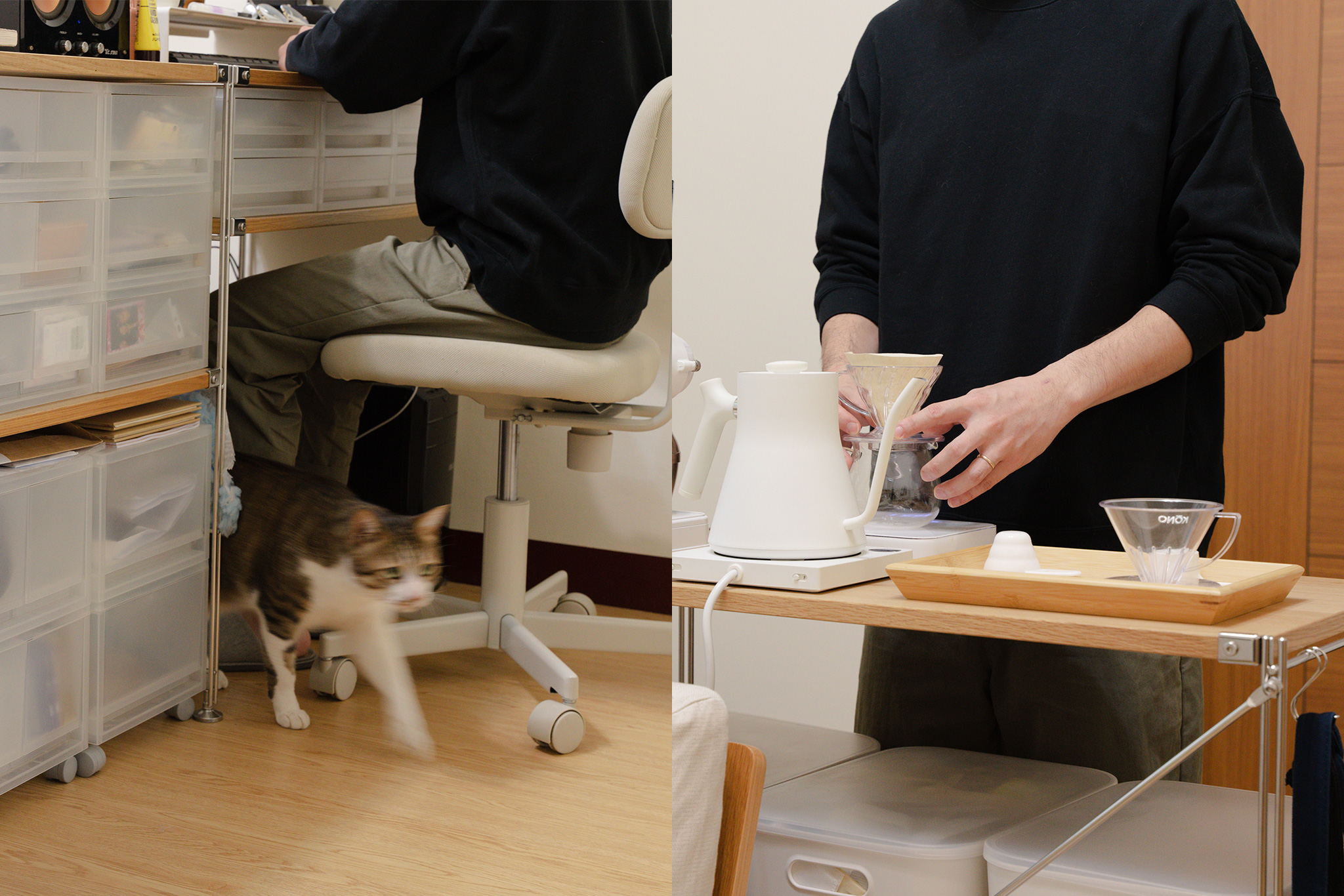 具通透性的SUS層架組讓貓咪能在家中輕易穿梭,對寵物也是個舒適的環境。 SUS層架組 83cm的高度,剛好符合咖啡作業時的人體工學。