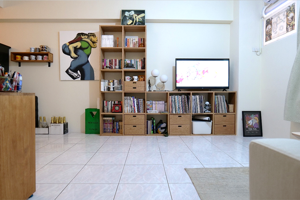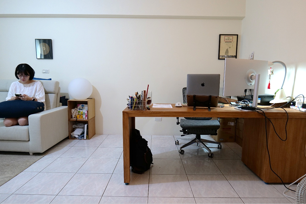 出社會後待過公司企業,但獨立接案的工作型態在安排時間與地點的彈性上較適合自己,因此5年多前到台北工作時便轉換職業至今,直到今年初因生活規劃變動搬遷回高雄,目前工作室原先為自家用於租賃他人使用的套房空間,稍微打點後便轉為自用。