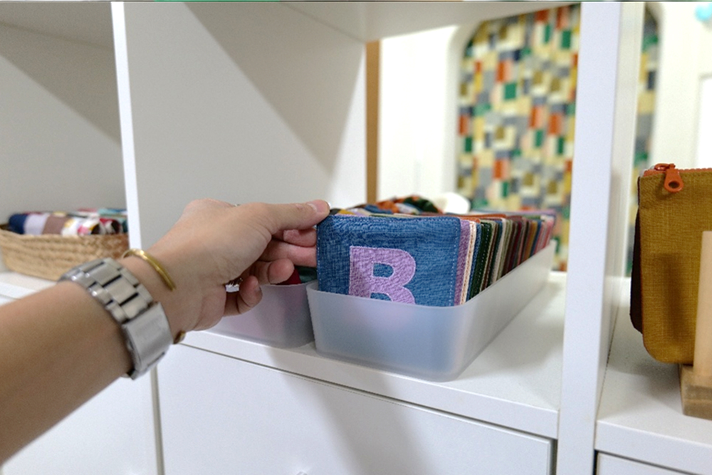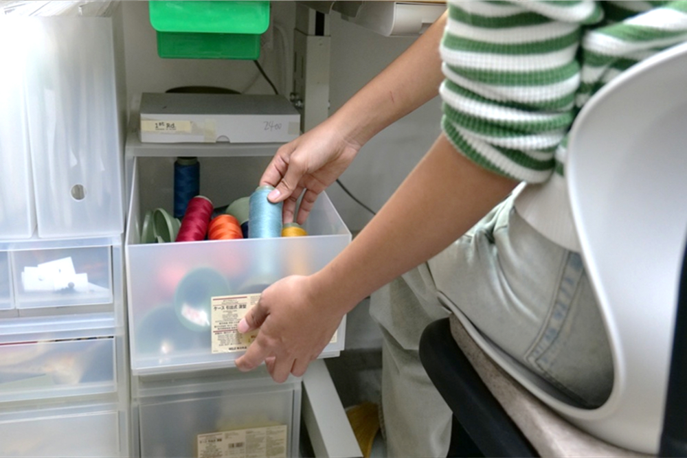 布料若裸放在架子上,擔心會有灰塵的問題,透過PP收納盒即可解決,且半透明的材質能讓我快速辨識抽屜中的物品,分門別類也很方便。