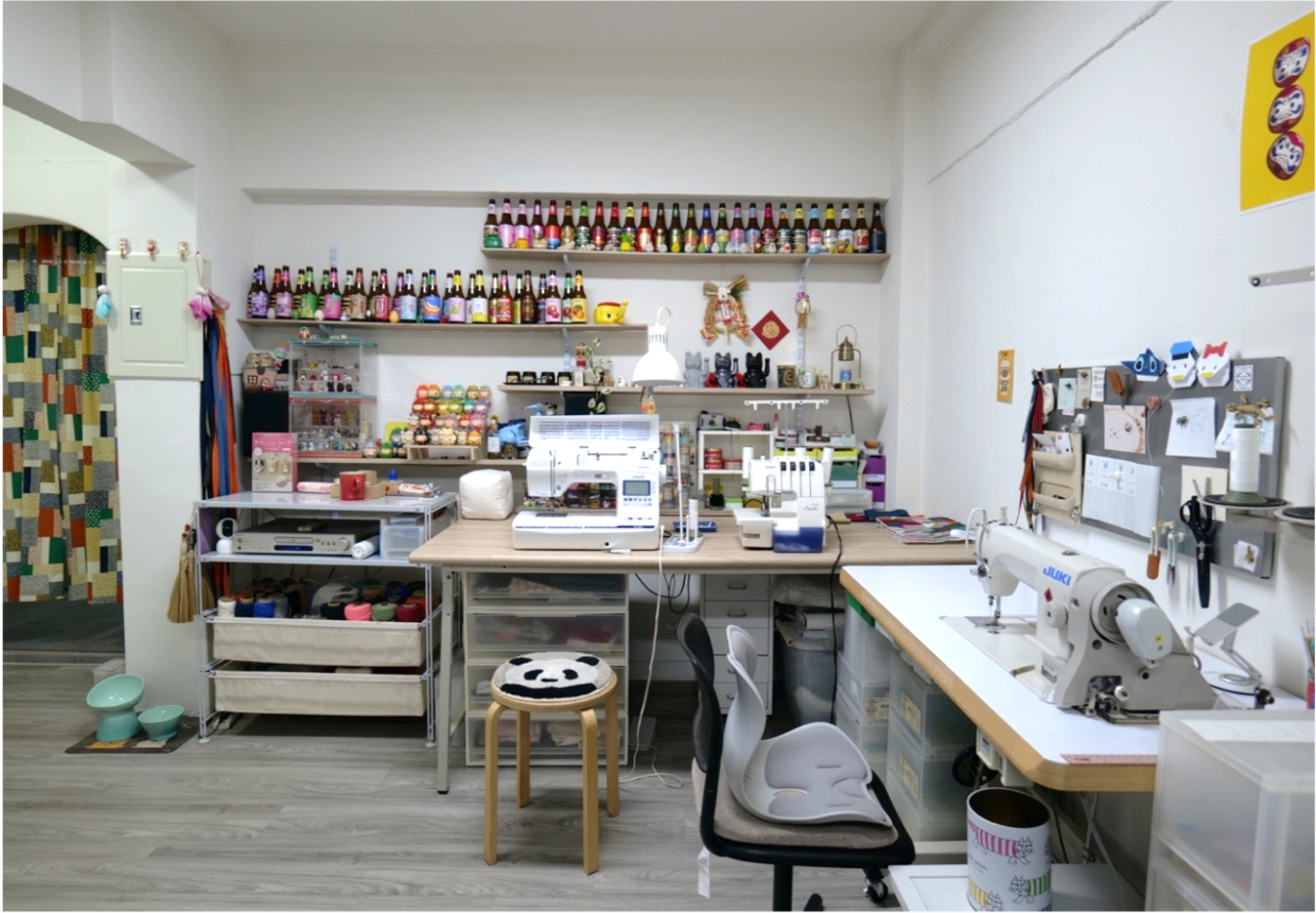 起初只是在家利用自身專長縫製製作一些商品散售,隨著作品及想法累積,開始覺得空間有些不足,經過與家人討論後,將家裡的閒置空間重新整理,便成為現在使用的工作室,正式開啟手作創業之路。