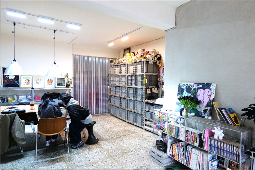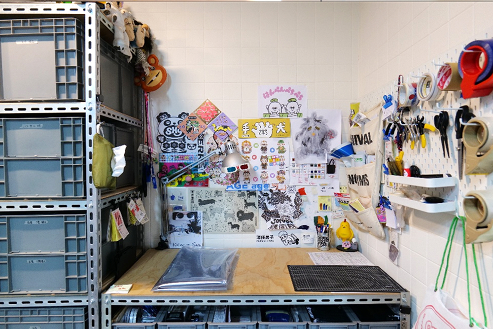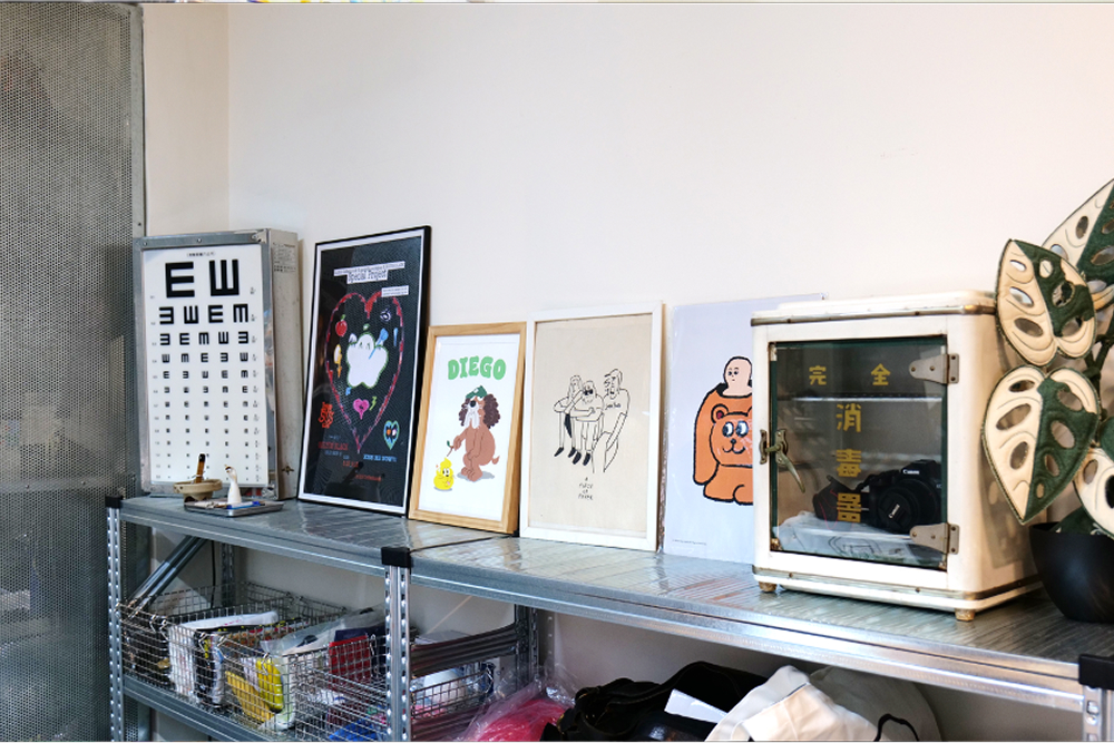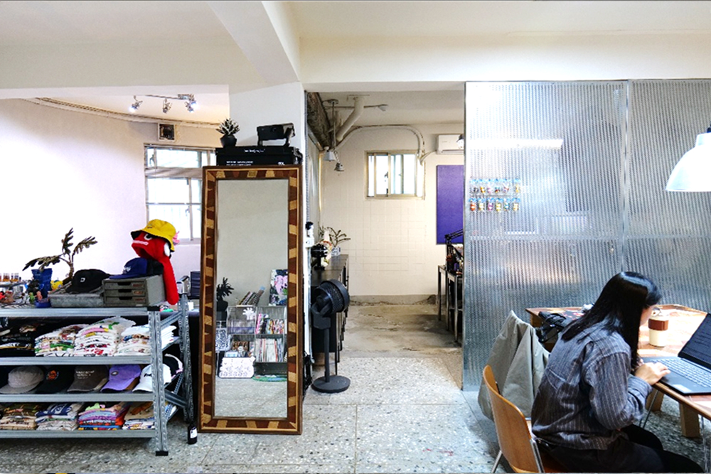 工作室地點稍偏遠一些,選擇開在這是因為離家近,雖然是老屋但建築剛好在邊間且坪數足夠、有很大的操作空間,與顧客大多採線上討論形式,不太影響工作效率。