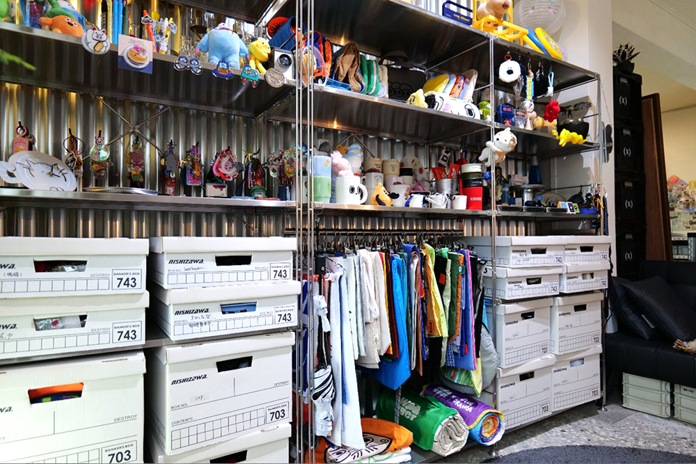 由於原有的層架外型較為厚重粗獷,對比SUS輕薄簡約的設計,洽當平衡了空間的厚重感。SUS除了展示各式樣品的功能外,因層板可調整高度,也增加許多收納庫存的空間,美觀與實用兼具。