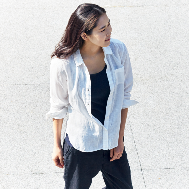 適合夏天柔軟涼爽的法國亞麻素材,不易黏著於流汗後的肌膚,經水洗加工處理後,能充分發揮法國亞麻材質特色,提升柔軟舒適的肌膚觸感。