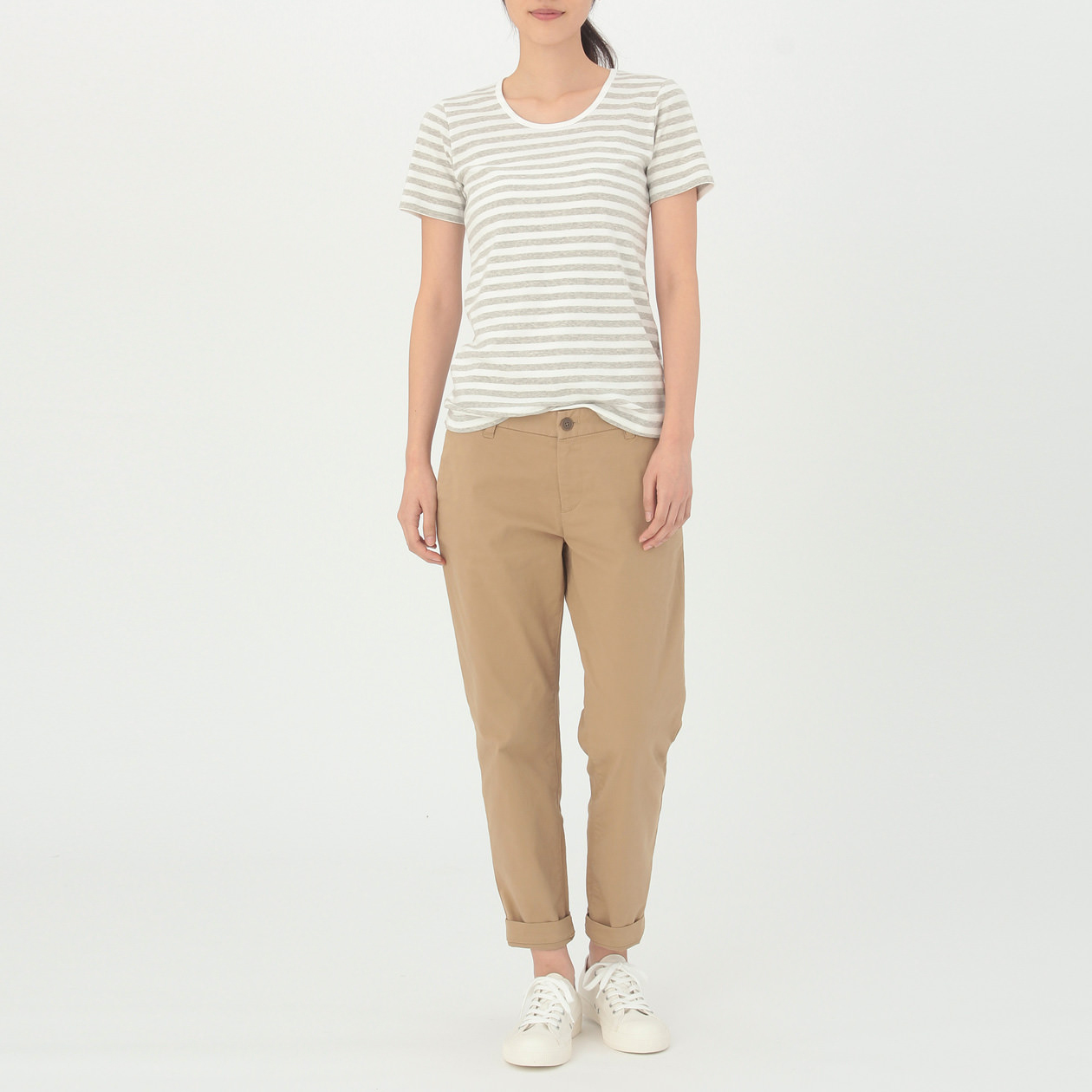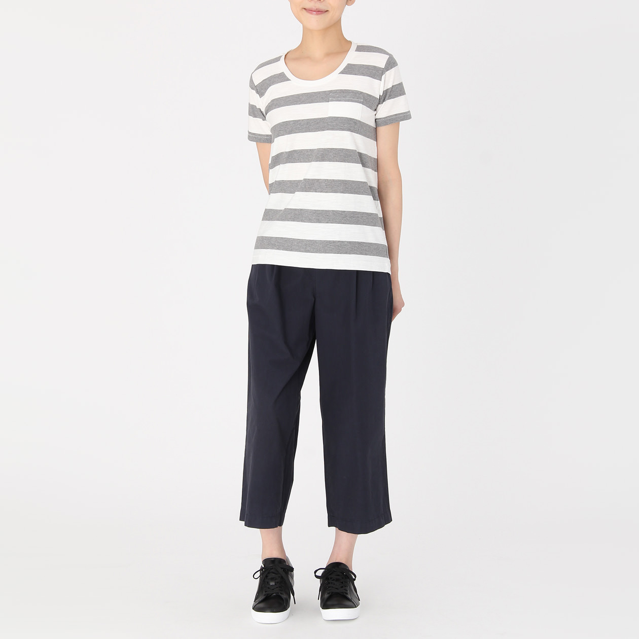 女有機棉針織圓領橫紋短袖T恤