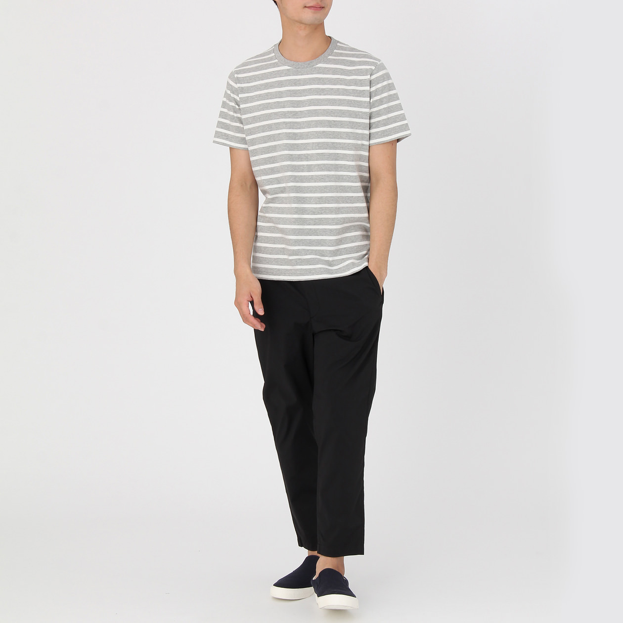 男有機棉細橫紋短袖T恤