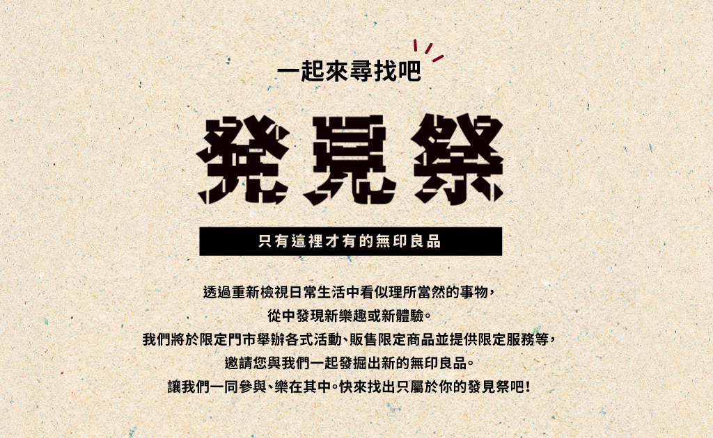 ※MUJI無印良品「發見祭」門市活動(限定門市:統一時代、微風、巨城、台中、台南及巨蛋門市)