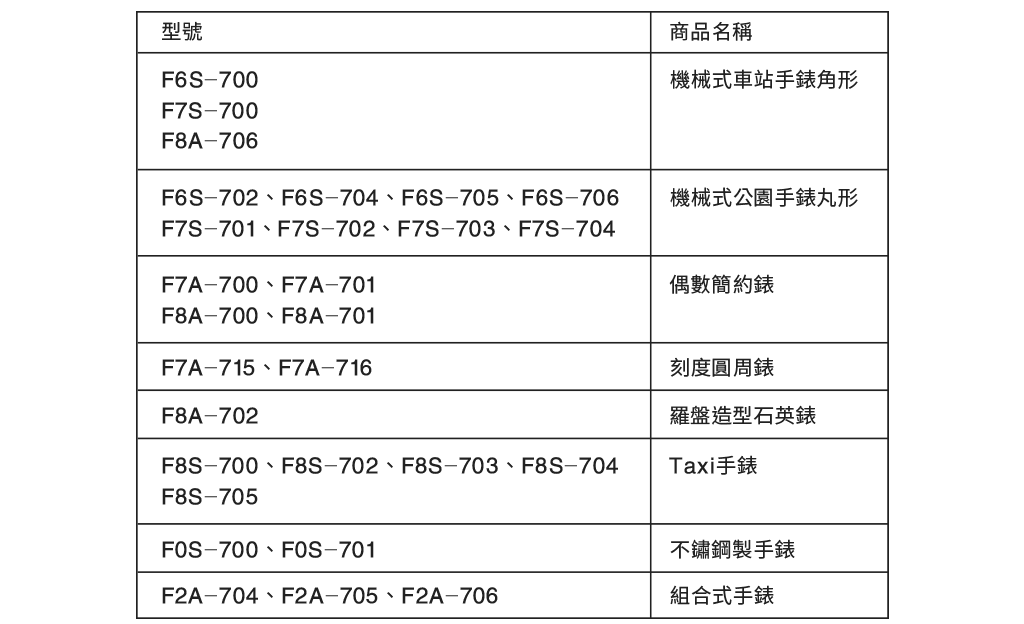承蒙您對無印良品的支持與愛護,本公司曾販售手錶款式如下: