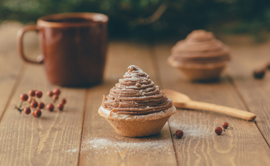 小尺寸的栗子塔,降低甜度,再加入蘭姆酒增添風味,美味不膩口。