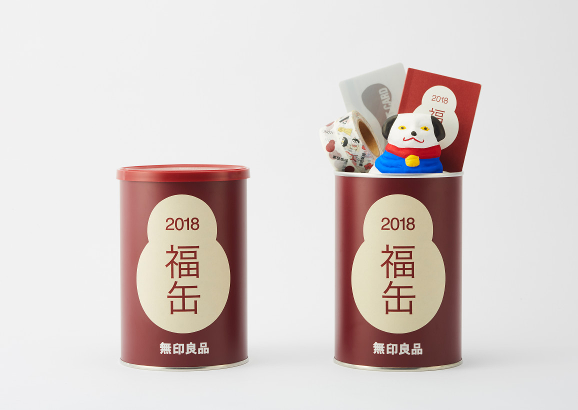 為了歡慶2018新年的來臨,MUJI無印良品將於12/30-1/1贈出全台限量福罐作為迎新祈福的新年贈禮,12/30-1/1,民眾只要至門市消費滿2018元即可獲贈日本福罐乙個,數量有限,送完為止。福罐內含日本傳統的手工藝吉祥物、新年限定款紙膠帶2卷及5張滿千送百抵用券。其中吉祥物擺飾以2018年的新春生肖-犬為主,藉由不同素材刻畫出多樣色彩與型態,為民眾祈求一整年的幸福平安。其他還有日本自古以來象徵幸運的招財貓、不倒翁和貓頭鷹等,以燒土、紙糊、木雕等日本傳統手工藝製成,一共49款樣式隨機放置於福罐中,讓民眾在新年的一開始即享受開罐的驚喜與樂趣。
