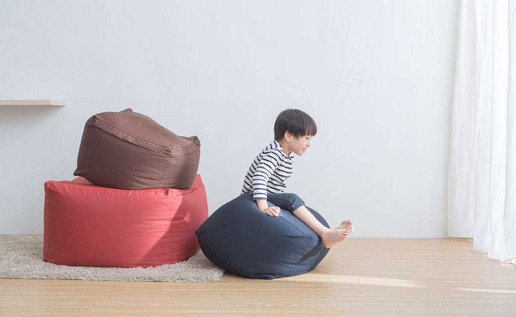 懶骨頭沙發組小款(45×45/深藍、深棕),2,980元:將懶骨頭沙發做成小尺寸,具有包覆性的坐臥感沒有改變,輕量而容易移動。也可搭配大款懶骨頭沙發一同坐臥使用。