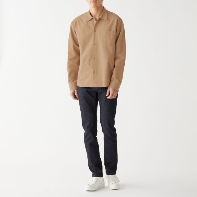 使用縱向、橫向都可拉伸的織線,方便活動、穿著感輕鬆舒適為其特長。使用對環境溫和的有機棉所製成。