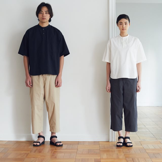 使用具硬挺感的高密度棉質織法,並搭配寬鬆穿著舒適感的寬肩設計,樣式簡潔清爽俐落。(預計3月下旬上市)