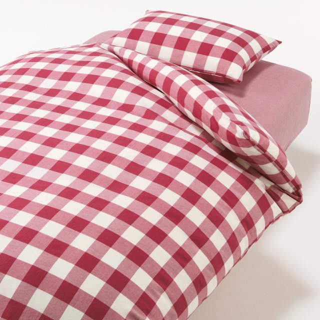 針對臥房寢織品的挑選,MUJI無印良品則推薦清爽配色的紅色格紋床用寢織組,含床包、枕套與被套,使用100%有機棉,令睡眠時感受到柔軟舒適,同時為顧客帶來新春好眠的同時也妝點新春年味。