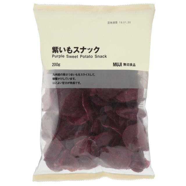 嚴選日本九州產紫蕃薯,切片後於表面淋上糖蜜,甜度適中。 -