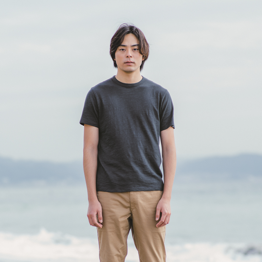 男印度棉節紗圓領短袖T恤,450元:使用粗細不均的紗線,製成表面具有凹凸紋理的T恤。使用對環境溫和的有機棉所製成。