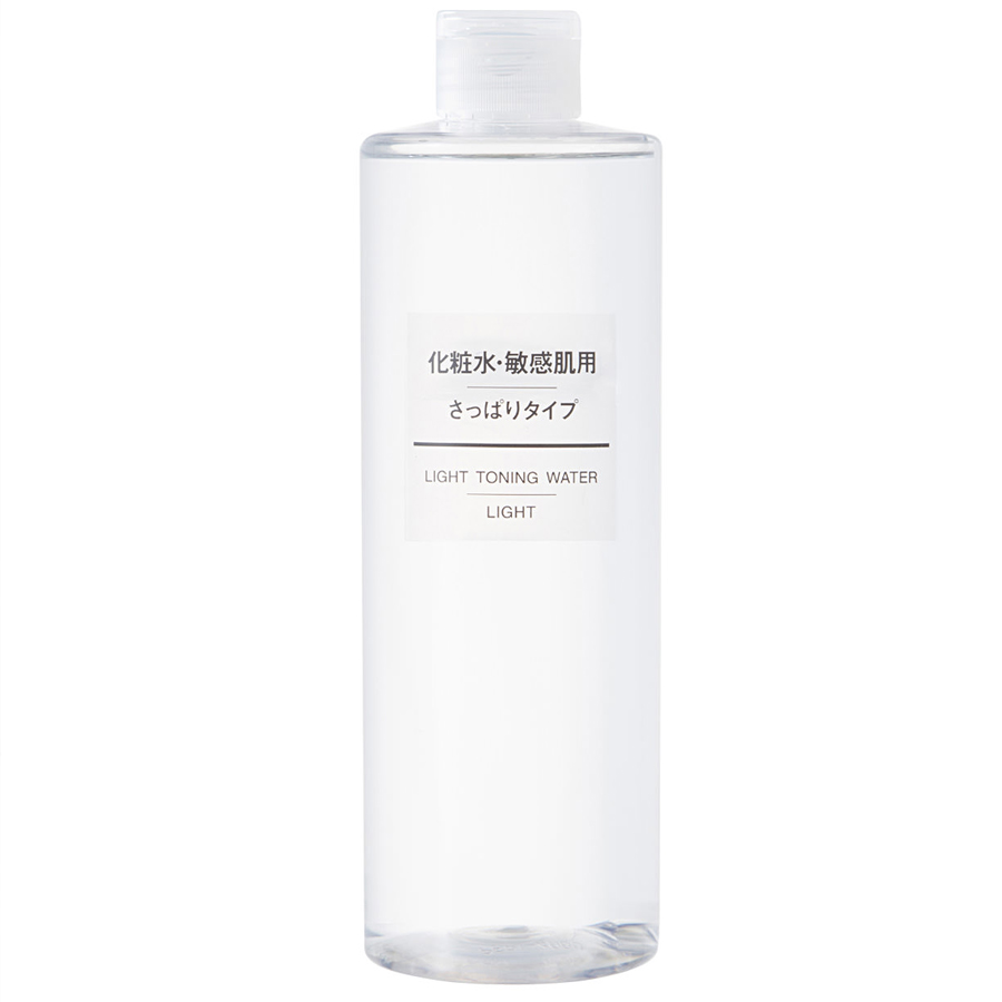MUJI敏感肌化妝水(清爽型) 400ml,380元:取自日本岩手縣釜石天然水製成的肌膚保養系列。添加肌膚保護成分滑莧精華、葡萄柚籽精華,及保濕效果高的LIPIDURE(聚季銨鹽-51),低刺激性,提供乾燥敏感肌清爽潤澤。
