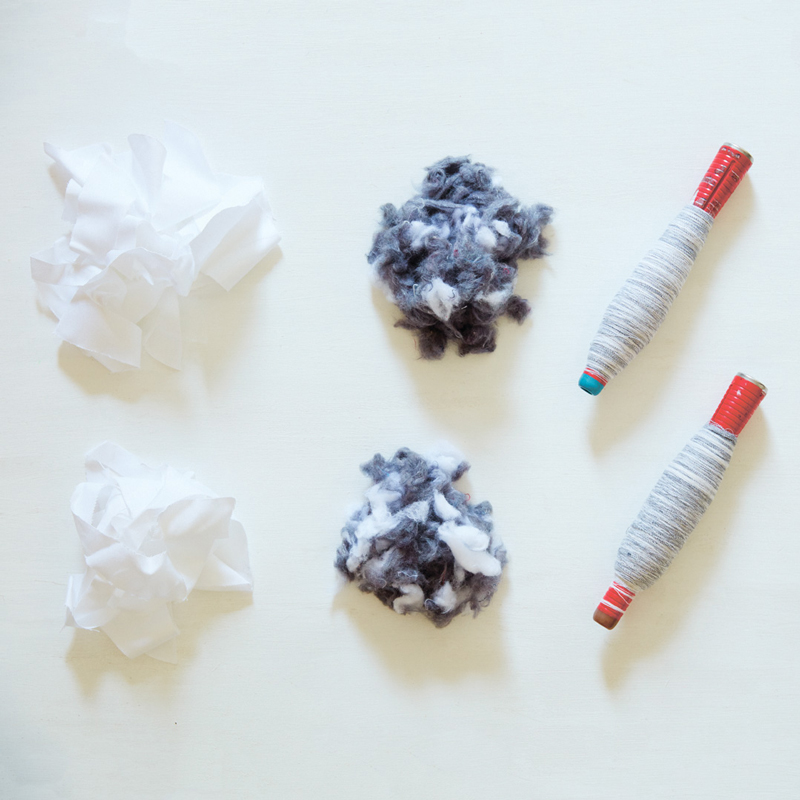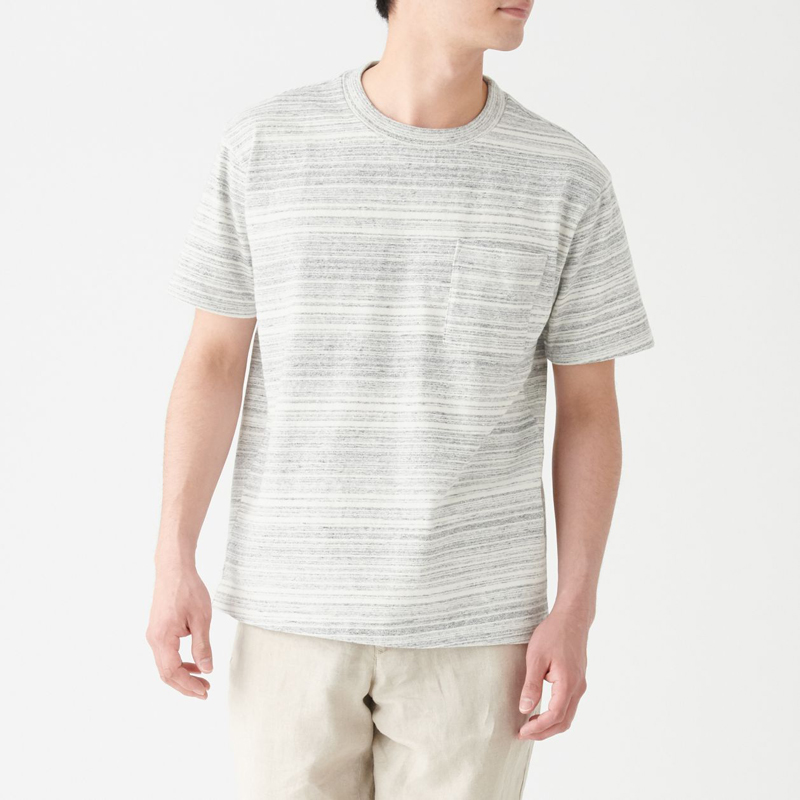 日本傳統工藝的理念強調「善用再生素材」。以此出發,將製作T恤、襯衫過程中產生的剩餘素材,混入尚未使用的棉素材紡織而成。使用剩餘素材製作成新商品,珍惜有限資源。