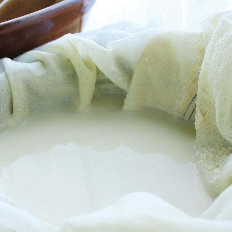 從廚房發掘的布料「豆漿濾布」,輕巧又堅韌。由古代中國開始,木棉布一直被用於豆漿製作工序之中。木棉布能抵受高溫及擠壓黃豆時所產生的壓力,且質感纖薄及透氣度高,觸感輕巧柔順;以之作為紡織素材,令服飾更耐穿,同時令穿着時更感清爽舒適