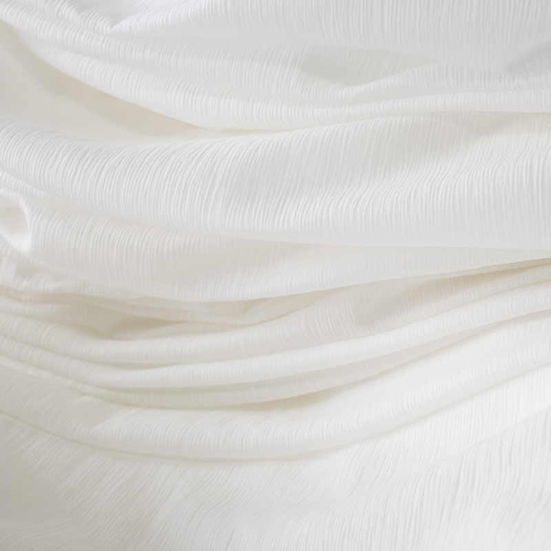 從日本農家傳統副業「高島縮織」啟發的夏季服飾。自江戶時代,滋賀縣琵琶湖北西側的高島市農家在冬季休耕時以編織為副業,「高島縮織品」表面具有凹凸感,吸濕排汗性佳,適合高溫潮濕的夏季穿著。