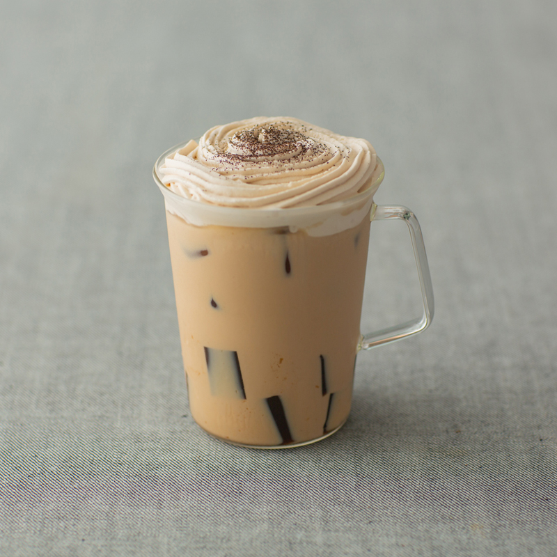 手沖咖啡三重奏 人氣的手沖濃縮咖啡歐蕾中加入特製甜酒咖啡凍,擠上香醇的咖啡酒鮮奶油,一次享受三種不同的咖啡風味。