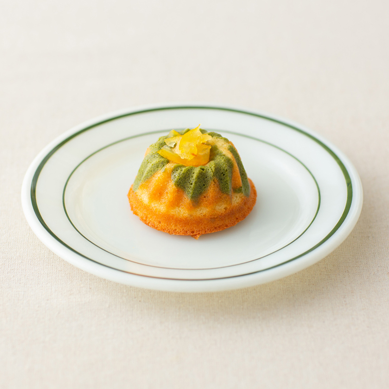 使用日本高知柚子汁及靜岡抹茶粉製成雙色蛋糕。