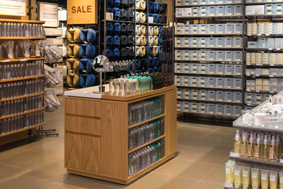 在商品導入面,MUJI無印良品中山門市大幅增加衣料服飾陳列空間,更領先全台引進第一座美妝保養品試用台,滿足顧客試用美妝保養品的需求,同時使用高貨架強化生活用品的陳列方式,方便消費者進入門市即可一眼看見所需物品,購足生活中的需要。