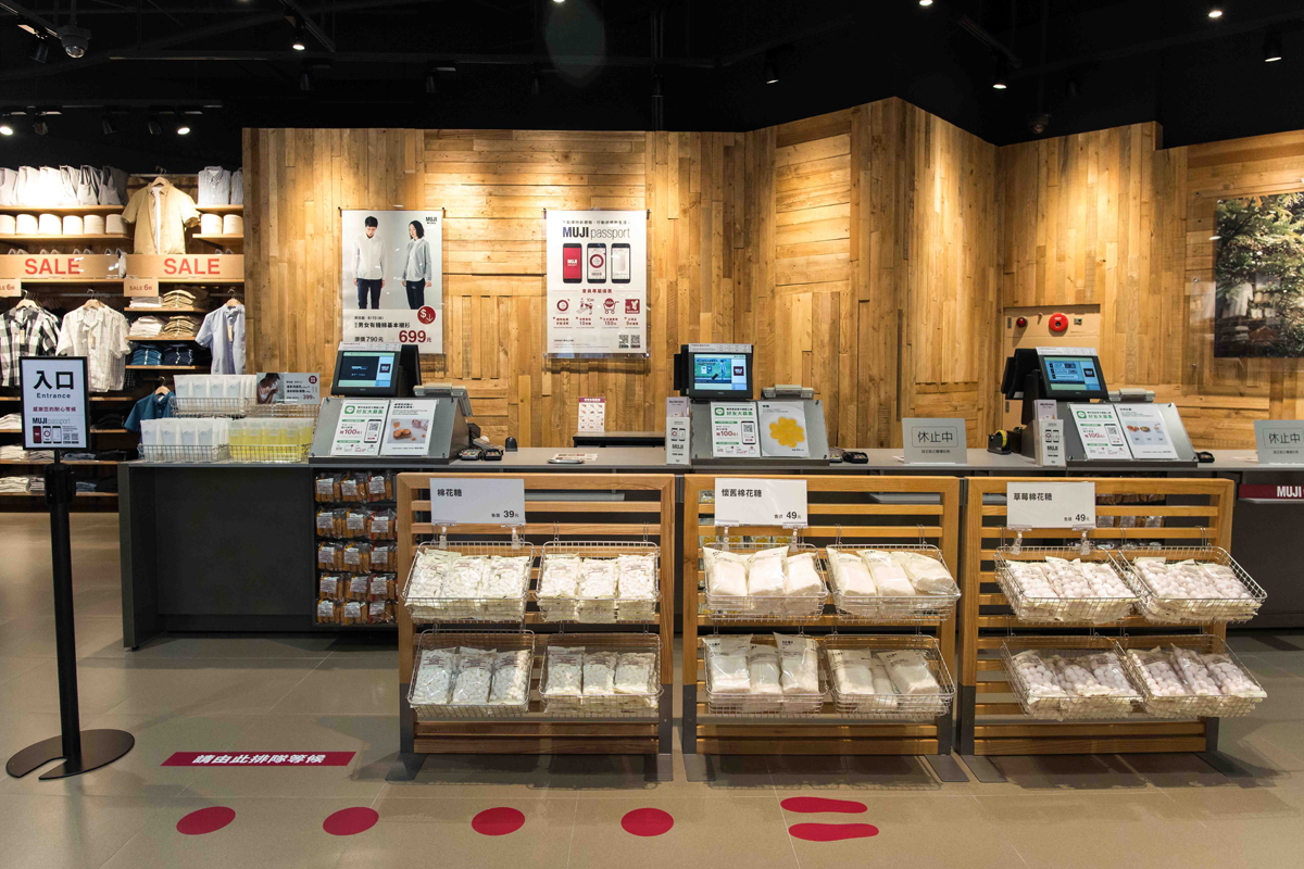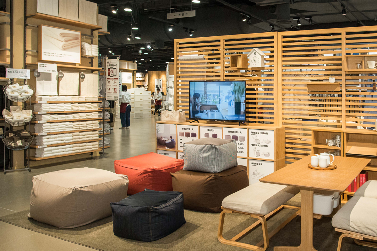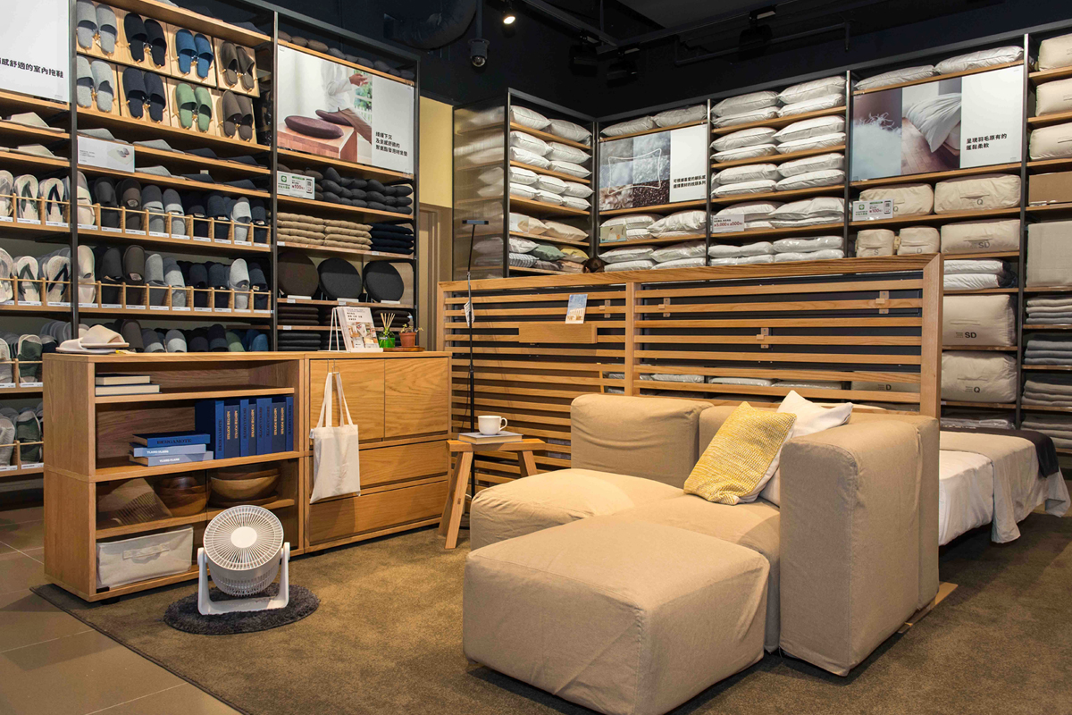 在門市裝潢上,MUJI無印良品中山門市的門市空間擴增至200坪,除了使用一貫堅持的古材、鐵板與土牆,維持門市溫馨樸實的氛圍外,為調整遊逛時的舒適度,不僅拓寬走道動線,也擴大更衣室空間,同時增加家具陳列情境空間,讓不同年齡層及不同客層的顧客皆可以體驗生活感的氛圍,營造更舒適自在的購物享受。
