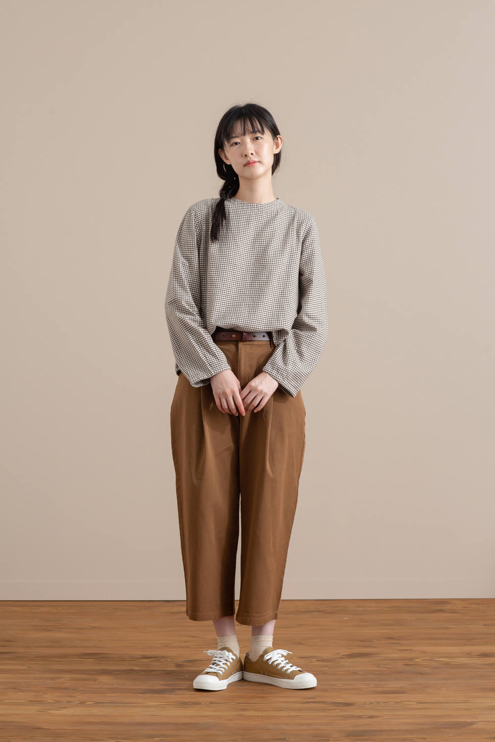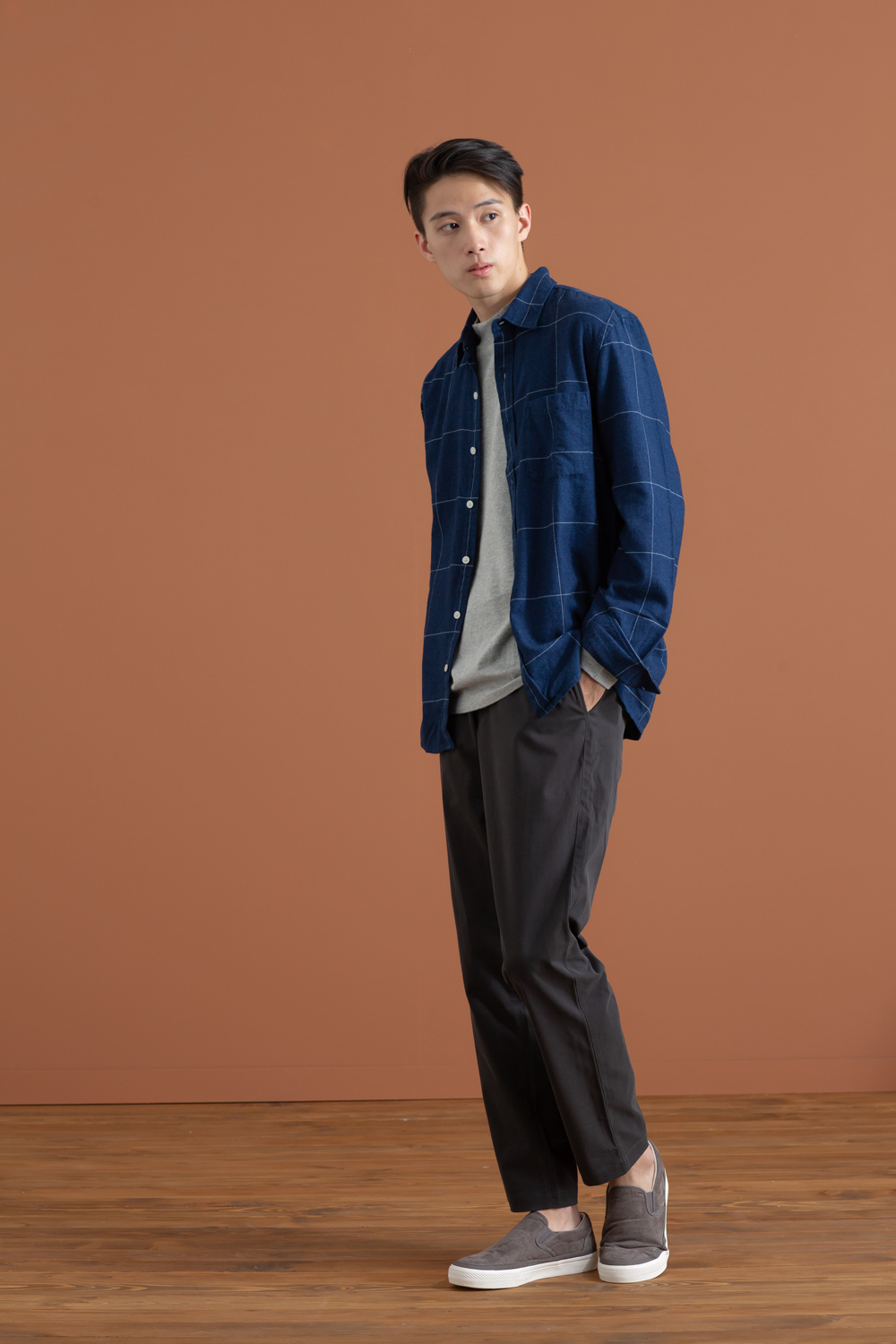 許多消費者衣櫃裡一定有一件格紋襯衫,「服飾造型顧問SA」建議若身上已經有一件格紋衫,則其餘造型即可以簡單、純色的搭配,讓格紋花樣凸顯即可。針對喜歡細膩格紋的女性消費者,可參考女新疆棉法蘭絨套衫搭配女有機棉混縱橫彈性綾織舒適打摺八分褲;男性若挑選格紋襯衫則可考慮百搭的窗格紋款式,推薦男印度棉法蘭絨藍染格紋襯衫,下半身選擇深色褲款收束整體視覺,即可營造俐落大方的風格。