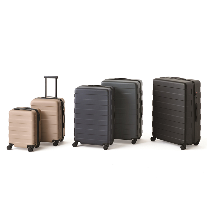 四輪硬殼止滑拉桿箱,3,900-8,500元:可自由調整高度的拉桿,採用雙輪式實心構造的輪子,按壓式的止滑開關,以及五種可選擇的尺寸,讓旅行前的準備以及旅途中更加輕鬆自在。