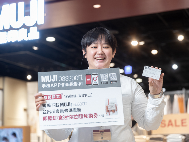歡慶全台第50家店舖,松山車站門市開幕:1/9-1/15,當日單筆消費滿1,000元,贈100元商品抵用券一張;滿2,000元,再加贈限定棉帆布便當袋一個。同期間,MUJI無印良品會員凡持無印良品聯名卡或MUJI passport手機APP購買溫和洗面乳(120g)即享優惠價99元。若是新戶於1/9-1/31下載MUJI passport手機APP,並於松山車站門市不限金額消費累計MUJI passport里程,還可獲得限定悠遊卡一張或即食迷你拉麵兌換券一張,歡迎喜歡MUJI無印良品的顧客前來松山車站門市遊逛。