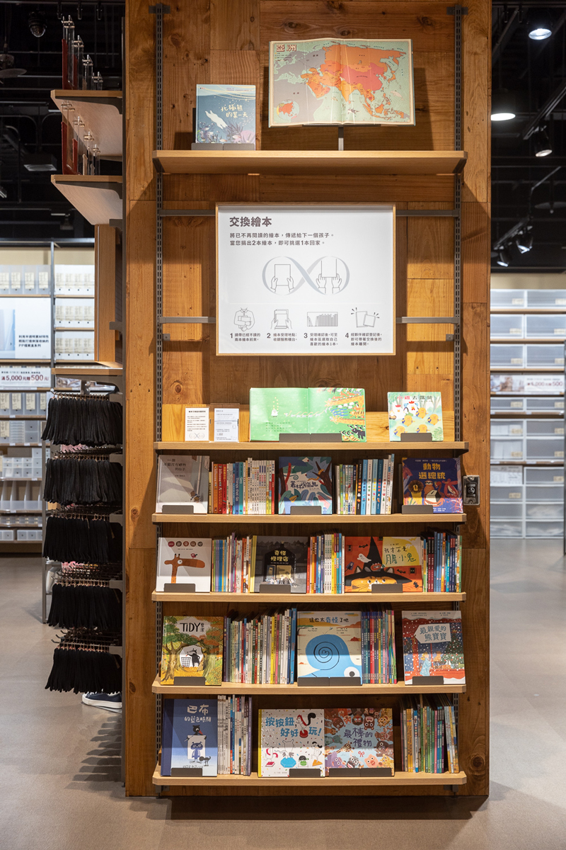 MUJI無印良品松山車站門市,位於捷運與台鐵共構的交通樞紐位置,不僅鄰近學區,地處饒河街夜市與五分埔商圈,由於地理特殊性,帶來在地居民、外來遊客、學生及通勤人潮等不同面向的消費客群。正因如此,為滿足多樣消費需求,MUJI無印良品松山車站門市在商品面及服務面上提出更全方位的生活提案思考:除了備齊各式男女服飾、童裝、家具、家居品、美妝保養品及各式文具小物外,考量到觀光旅遊人潮,特別強化MUJI to Go旅行商品推薦,並設計獨立展檯,分享最受熱銷歡迎的四輪硬殼止滑拉桿箱商品系列,方便顧客試用挑選。同時顧及到周邊國小與教育活動發展蓬勃,特別準備了交換繪本服務,希望邀請周邊家庭與學校師生共享閱讀的樂趣,連結人與人之間的互動。另一方面,MUJI無印良品松山車站門市為融入在地,也趁著門市開幕期間與南港親子會館合作,捐贈童書繪本共100本,讓文字與珍惜的善意能長久流傳。