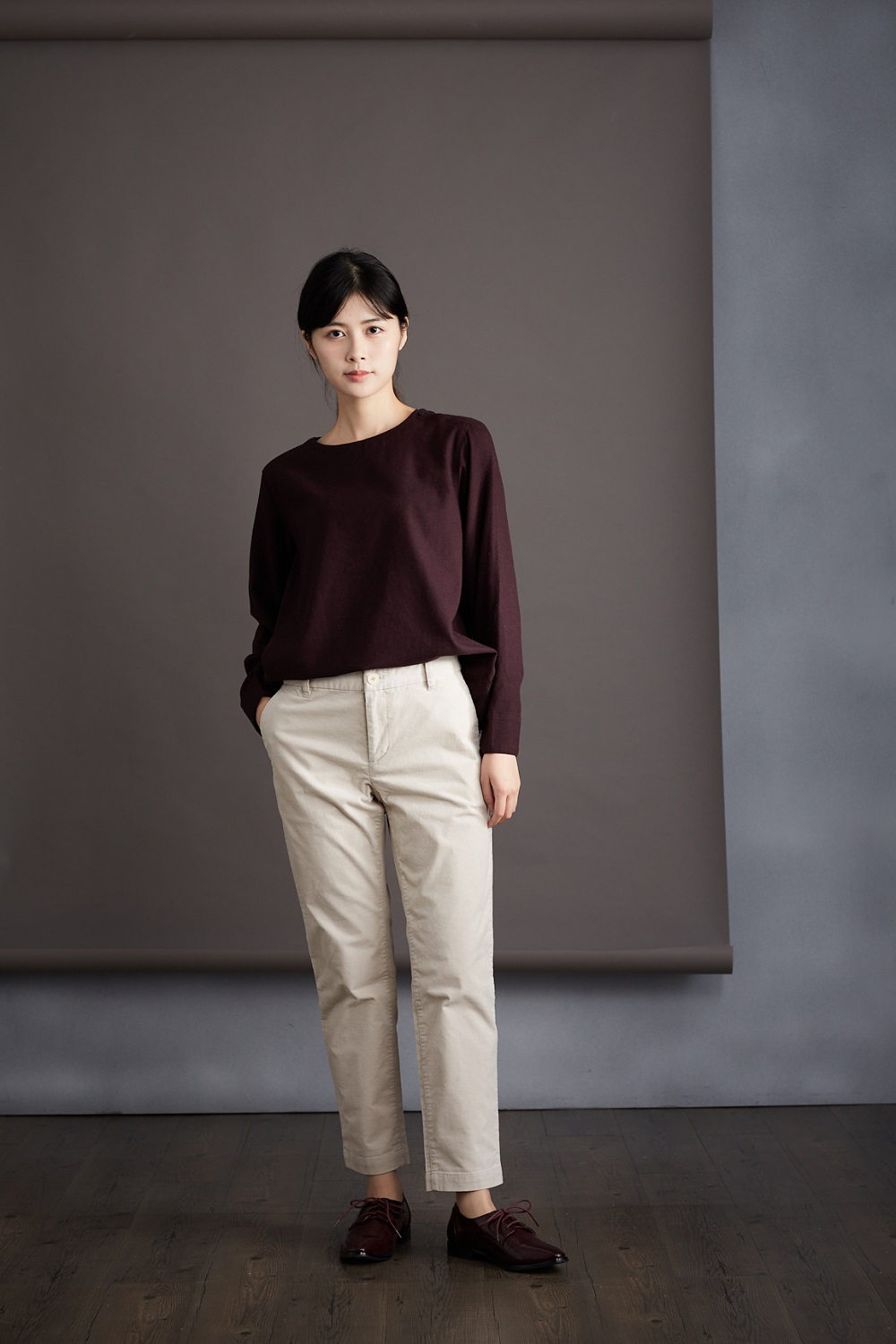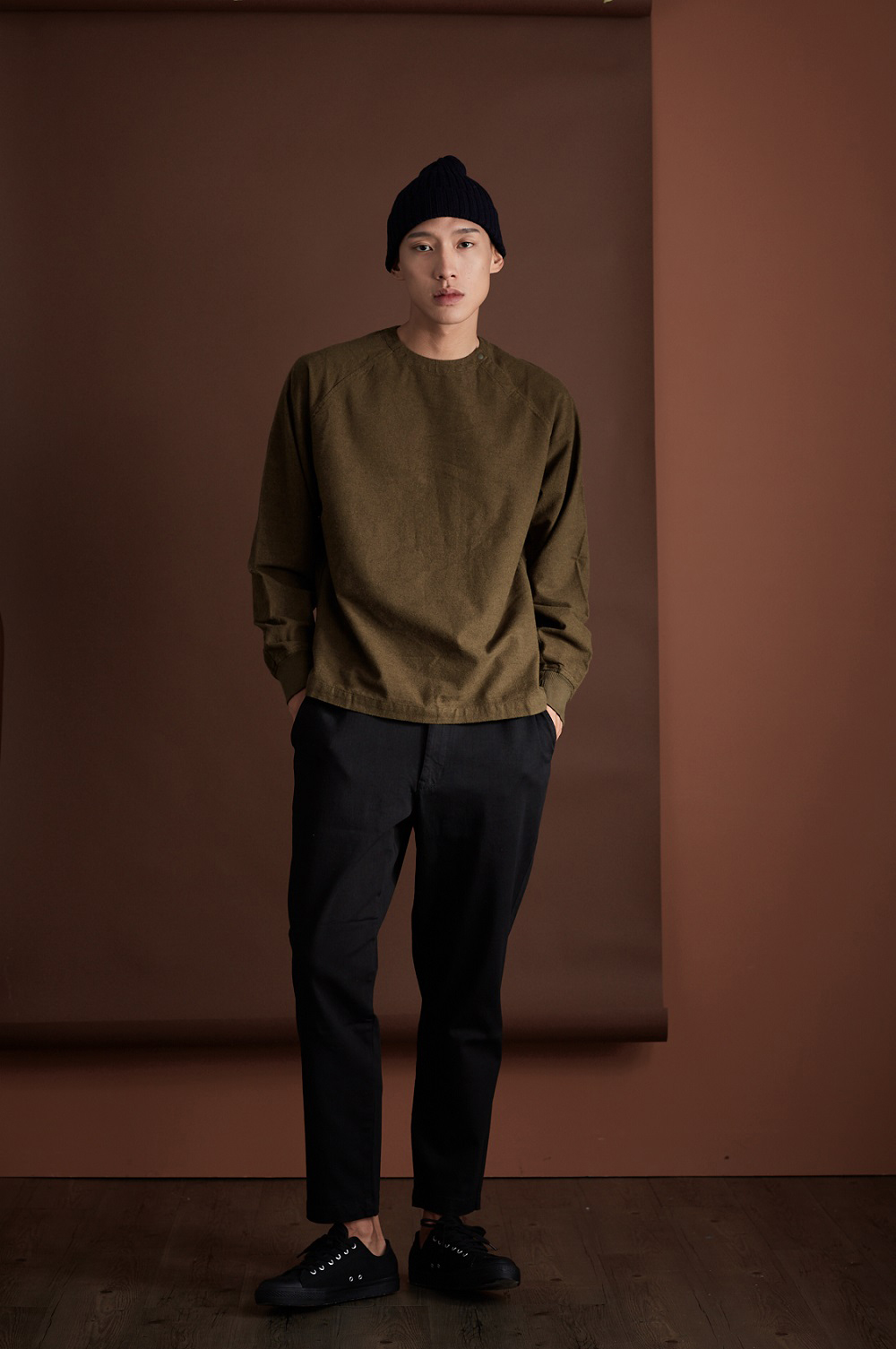 男女有機棉法蘭絨套衫,890元:使用有機棉強韌纖細的雙紗線,以雙面起毛以及水洗加工增加布料溫暖的觸感,擁有慣穿般的舒適質感為其特色。