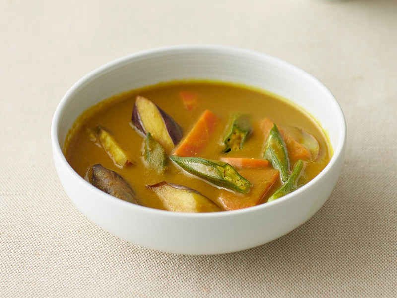 使用金時美人地瓜、VDS胡蘿蔔、秋葵等四種蔬菜,以鹽麴調味後烘烤,再加入咖哩醬中一同燉煮。