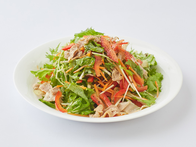 在秋季新品上, Café&Meal MUJI的冷食沙拉一直堅持豐富口感及營養充足,從選材到調理步驟都十分費工,像是茶香豬肉沙拉先將汆燙豬肉片泡於台灣青茶中,使豬肉味道更加爽口,再將泡過的茶葉重複利用製成醬汁,最後撒上茶渣,是一道強調珍惜食材且帶有特殊清香的秋日料理。