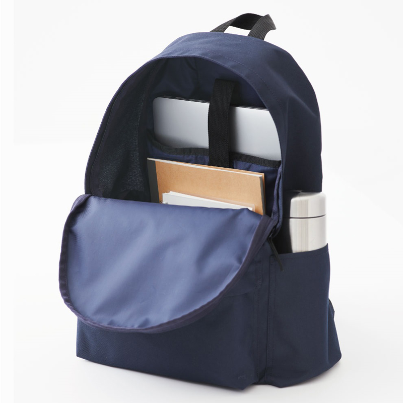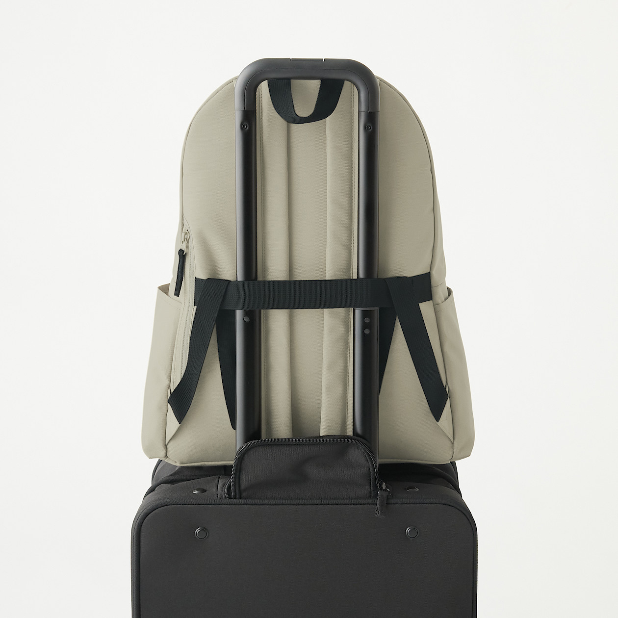 可減輕肩膀負擔撥水加工聚酯纖維後背包,990元:可使用所研製出可減輕肩膀負擔的肩背軟墊。附有可收納筆電的內袋。可加掛固定於拉桿箱設計。